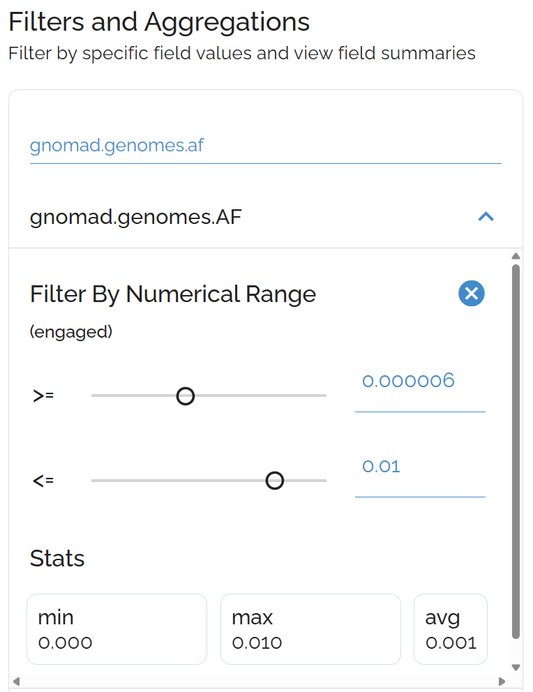 clinvar.clinicalSignificance:Pathogenic+ Sort:gnomad.genomes.af(ascending) - • Prioritize pathogenic variants by rarity in the population